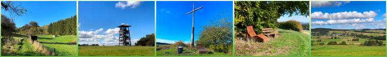 Hinter Mannebach folgen wir ein Stück dem gleichnamigen Bach, bis dieser in den Elzbach mündet. Wir bleiben noch kurz oberhalb des Elzbachs, dann biegen wir bei sich ständig erweiternden Blicken nach Südosten ab und steuern den „Eifelguck“-Turm bei Sassen an, von dem wir ein 360 Grad Panorama genießen können. Es folgt ein längeres Waldstück, das ohne Steigung entspannt zu gehen ist, zum Träumen einlädt, aber auch an eine düstere Vergangenheit erinnert: Der „Grüne Weiher“ am „Hurenbüsch“ wirkt zunächst stimmungsvoll-romantisch, entpuppt sich aber als ehemalige Richtstätte. (Leider ist dieser bemerkenswerte Ort zurzeit - Februar 2026 - durch Waldarbeiten verunstaltet.)